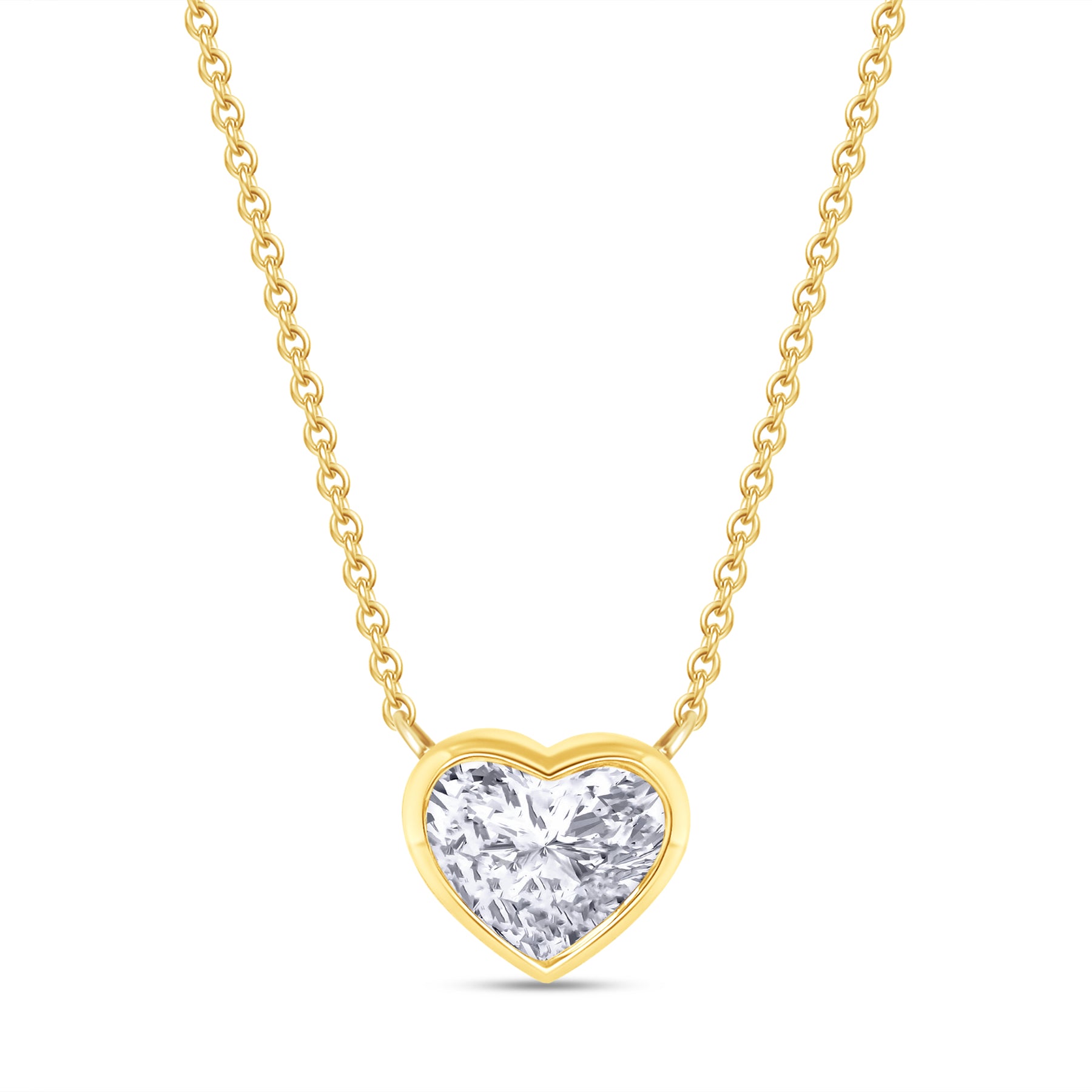 This piece features a bezel-set heart-cut diamond on a dainty 14K gold chain, part of our Reina by Deena collection.