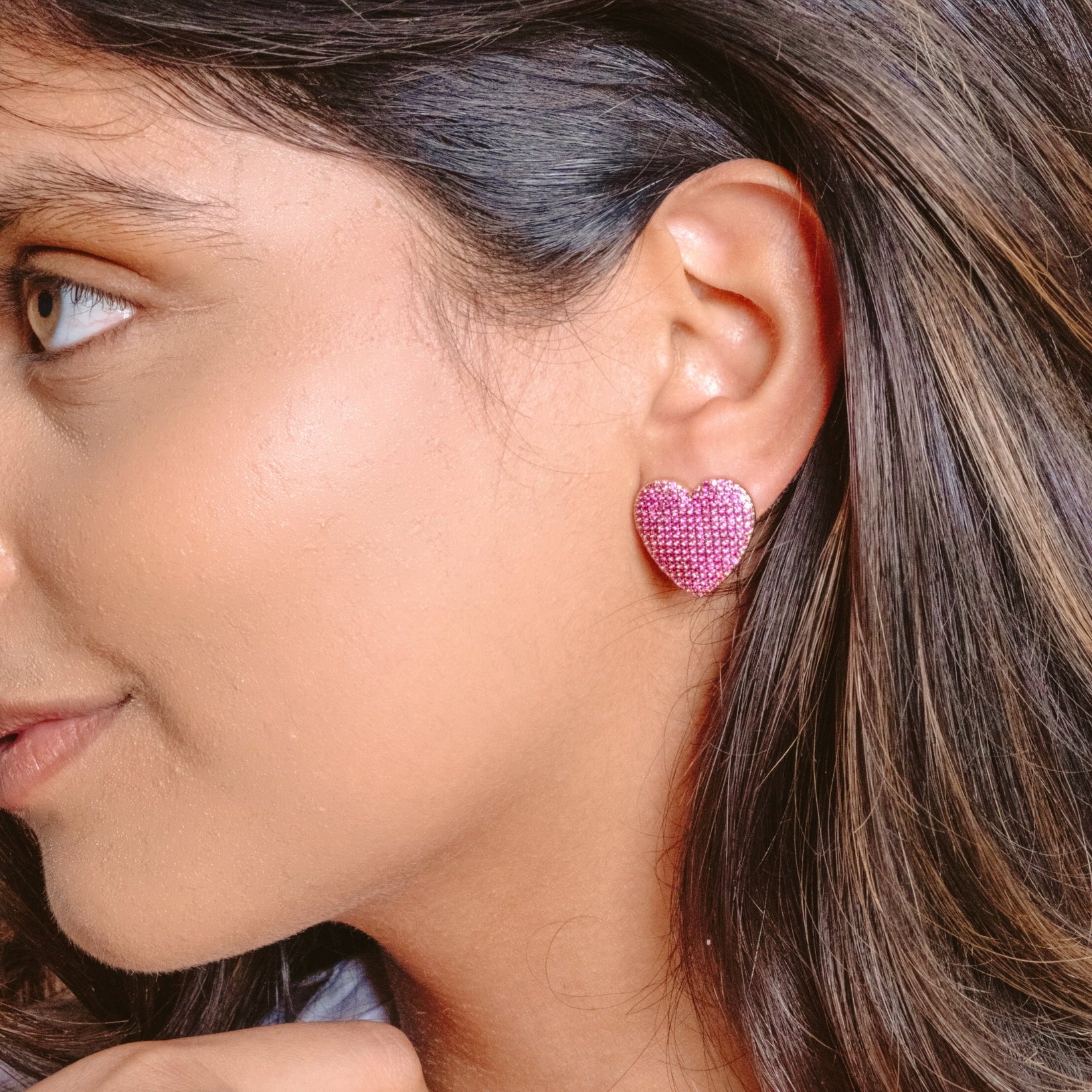 Pink Salvador Earrings, part of our Love Collection, these earrings are made from 925 sterling silver with CZ stones and plated in 14K Gold or Rhodium.